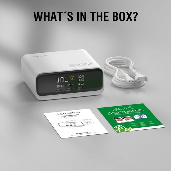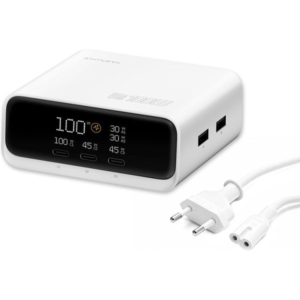> > > 4SMARTS DESK CHARGER GAN SCREEN 100W 3X TYPE-C+ USB WHITE