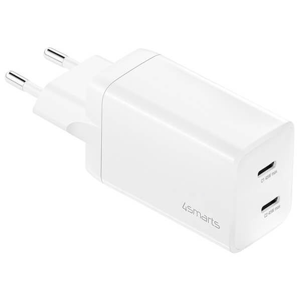 4SMARTS TRAVEL WALL CHARGER PDPLUG DUAL 45W GAN 2X USB TYPE-C PORTS WHITE |