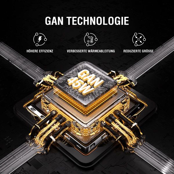 Χάρη στη σύγχρονη τεχνολογία GaN (νιτρίδιο του γαλλίου), ο φορτιστής επιτυγχάνει υψηλότερη ενεργειακή απόδοση και μειωμένη εκπομπή θερμότητας, διατηρώντας παράλληλα τη μέγιστη ισχύ. Η τεχνολογία GaN επιτρέπει πιο μικρό και ελαφρύ σώμα χωρίς συμβιβασμούς στην απόδοση - ιδανικό για όσους αναζητούν ισχυρή, αξιόπιστη και φορητή φόρτιση.