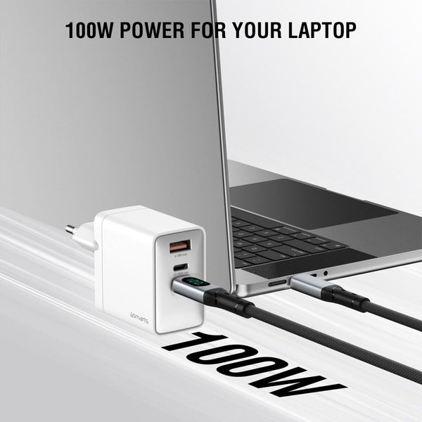 Ισχύς 100W Ισχυρή φόρτιση για MacBook, Dell και άλλα Με μέγιστη ισχύ 100W, ο φορτιστής προσφέρει γρήγορη και αξιόπιστη φόρτιση για laptops υψηλής κατανάλωσης, όπως MacBook Pro, Dell XPS και άλλες συσκευές, χωρίς καθυστερήσεις ή διακοπές.