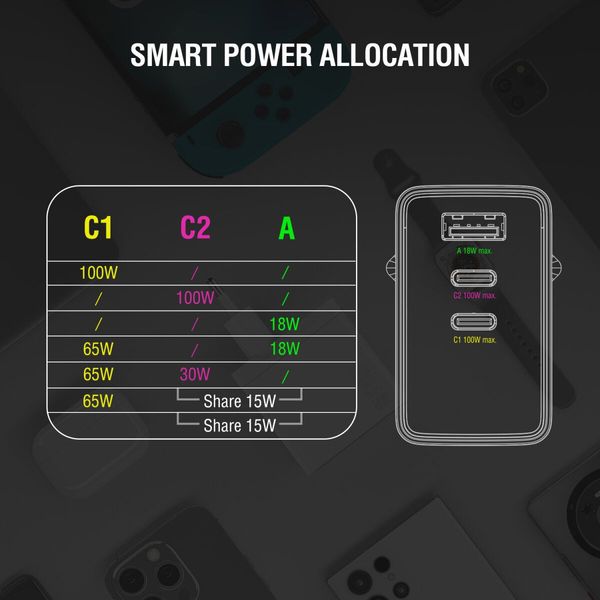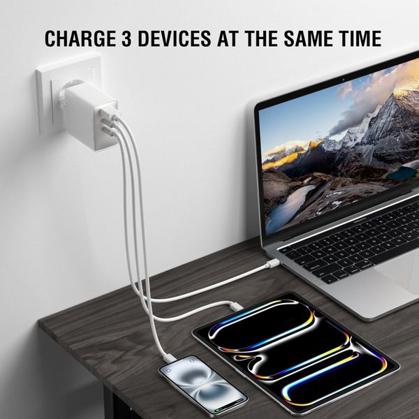 Φόρτιση 3 συσκευών ταυτόχρονα Διαθέτει δύο θύρες USB-C και μία USB-A, επιτρέποντας την ταυτόχρονη φόρτιση laptop, smartphone, tablet και ακόμη και Nintendo Switch, εξοικονομώντας χρόνο και μειώνοντας την ακαταστασία από καλώδια.