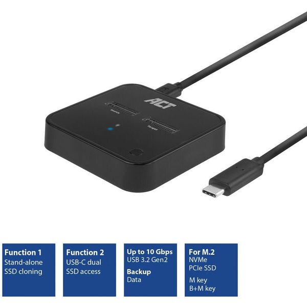 ACT AC1502 DUAL SSD DOCKING CLONE STATION M.2 NVME/PCIE USB-C 3.2 GEN2 10 GBPS PER.620789 ACT ACT ΕΞΩΤΕΡΙΚΕΣ ΘΗΚΕΣ