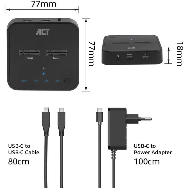 ACT AC1502 DUAL SSD DOCKING CLONE STATION M.2 NVME/PCIE USB-C 3.2 GEN2 10 GBPS
