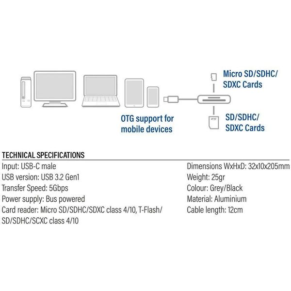 ACT AC7056 USB-C CARD READER FOR SD AND MICRO SD SD 4.0 UHS-II PER.620817 ACT ACT ΣΥΣΚΕΥΕΣ ΑΝΑΓΝΩΣΗΣ ΕΙΔΙΚΗΣ ΜΝΗΜΗΣ