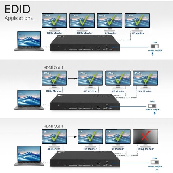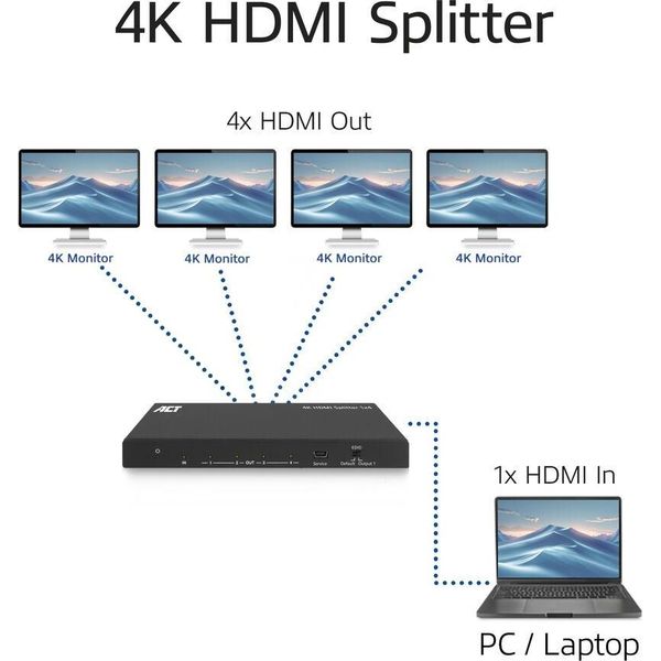 > > > ACT AC7832 HDMI SPLITTER 4K HDMI SPLITTER 1 INPUT 4 HDMI OUTPUTS