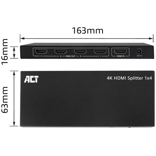 ACT AC7832 HDMI SPLITTER 4K HDMI SPLITTER 1 INPUT 4 HDMI OUTPUTS