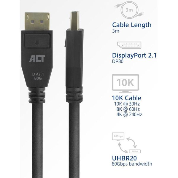 ACT AK4081 CABLE DISPLAY PORT 2.1 MALE-MALE 8K@60HZ 4K@240HZ 3M BLACK (PER.620766)