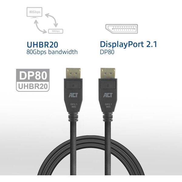 ACT AK4082 CABLE DISPLAY PORT 2.1 MALE-MALE 8K@60HZ 4K@240HZ 2M BLACK (PER.620768)