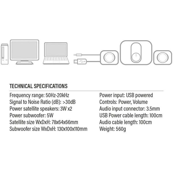 ACT EM3515 EMINENT 2.1 STEREO SPEAKER SET FOR PC AND LAPTOP USB POWERED (PER.620863)