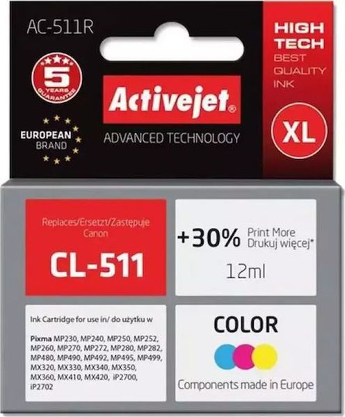 ACTIVEJET AC-511R ΜΕΛΑΝΙ ΣΥΜΒΑΤΟ ΜΕ CANON CL-511 PREMIUM 12 ML COLOR (ANA.ACJ00570)