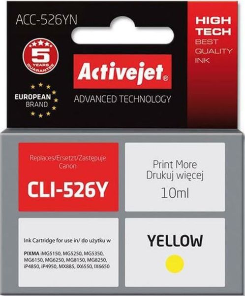 ACTIVEJET ACC-526YN ΜΕΛΑΝΙ ΣΥΜΒΑΤΟ ΜΕ CANON CLI-526Y 10 ML YELLOW