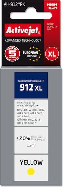 ACTIVEJET AH-912YRX ΜΕΛΑΝΙ ΣΥΜΒΑΤΟ ΜΕ HP 912XL 3YL83AE PREMIUM 990 PAGES 12 ML YELLOW