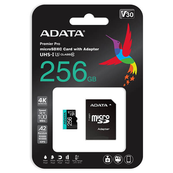 ADATA AUSDX256GUI3V30SA2-RA1 PREMIER PRO 256GB MICRO SDXC U3 V30 A2 WITH ADAPTER |