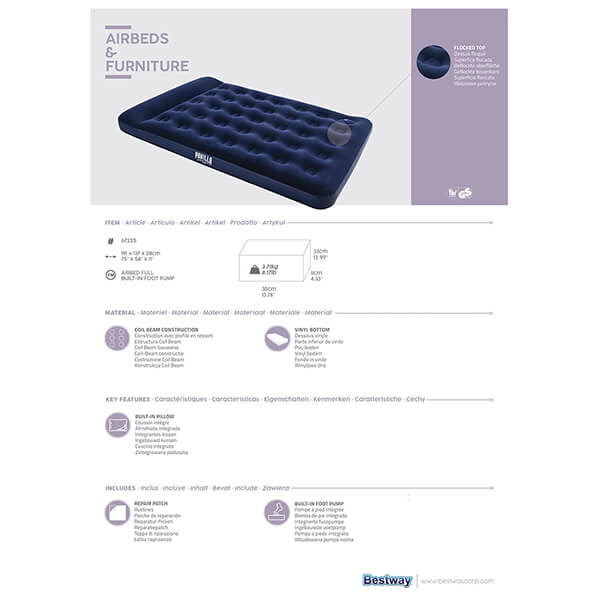 ΑΕΡΟΣΤΡΩΜΑ ΥΠΝΟΥ ΒΕΛΟΥΔΙΝΟ ΜΟΝΟ ΜΕ ΑΝΤΛΙΑ 185X76X22CM BESTWAY 15311