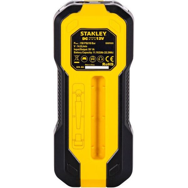 Ισχυρή και αποδοτική λειτουργία Ο mini αεροσυμπιεστής STANLEY SXIF0101 προσφέρει μέγιστη πίεση λειτουργίας έως 10 bar και παροχή αέρα 14.2 l/min, εξασφαλίζοντας γρήγορο και αποτελεσματικό φούσκωμα σε κάθε εφαρμογή.
