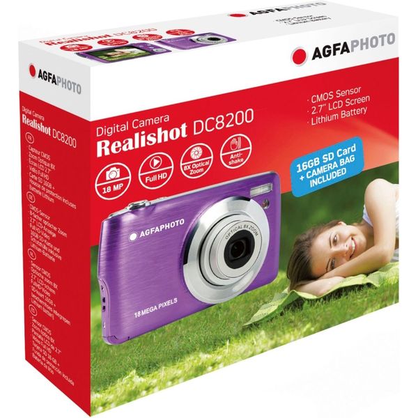AGFA PHOTO DC8200 PURPLE + CASE + SD CARD 16GB