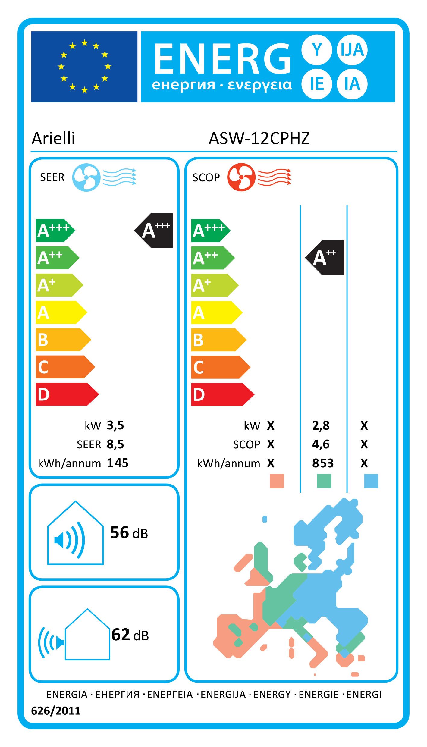 Δελτίο προιόντοςΚλιματιστικό Inverter της Arielli με ισχύ 12.000 BTU. Χαρακτηριστικά Τοποθέτηση: Επιτοίχια.Απόδοση: 12000 BTU.Απόδοση ψύξης, (KW): 3.5 (0.65-4.1).Απόδοση θέρμανσης, (KW): 4.2 (0.93-4.2).Ενεργειακή απόδοση ψύξης: A+++.Ενεργειακή απόδοση θέρμανσης: A++.Βαθμός Απόδοσης Ψύξης (SEER): 8.5.Βαθμός Απόδοσης Θέρμανσης (SCOP): 4.6.Ετήσια κατανάλωση ενέργειας, ψύξη: 145 kWh/y.Ετήσια κατανάλωση ενέργειας, θέρμανση: 853 kWh/y.Περιοχή κάλυψης: 18-25 τ.μ.Ψυκτικό μέσο: R32.Διαστάσεις εσωτερικής μονάδας (ΠxΥxΒ): 82.2 x 29.5 x 19.8 cm.Βάρος εσωτερικής μονάδας: 8 kg.Επίπεδο θορύβου εσωτερικής μονάδας: 56 dB.Διαστάσεις εξωτερικής μονάδας (ΠxΥxΒ): 70.5 x 28 x 53 cm.Βάρος εξωτερικής μονάδας: 24.5 kg.Επίπεδο θορύβου εξωτερικής μονάδας: 62 dB.Χρώμα: Λευκό.Εγγύηση: 2 χρόνια.Αποκτήστε ένα πακέτο εγκατάστασης από το e-shop.cy. Δείτε τις παρεχόμενες υπηρεσίες και επιλέξτε αυτή που καλύπτει τις ανάγκες σας.