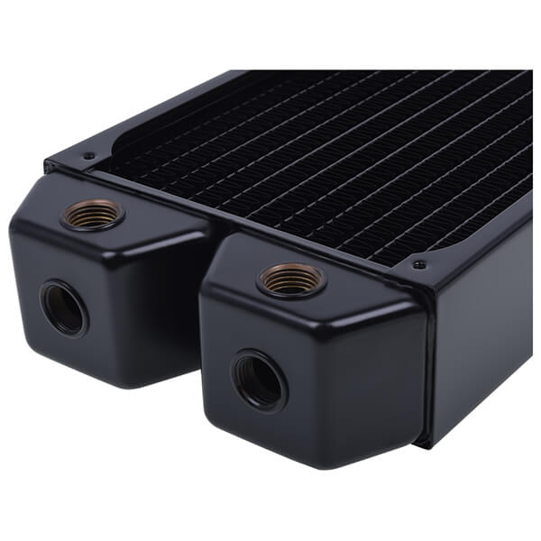 Radiator υδρόψυξης από καθαρό χαλκό, με εύκολη τοποθέτηση. Ολα τα κύρια μέρη, όχι μόνο τα πτερύγια και τα κανάλια, αλλά και οι θάλαμοι είναι επίσης κατασκευασμένα από χαλκό. Χαρακτηριστικά Διαστάσεις: 280 x 124 x 46 mm.Υλικό: Χαλκός.Υλικό εξωτερικού περιβλήματος: Ατσάλι.Threads: 6x1/4''.Μέγεθος ανεμιστήρα: 2 x 120 mm.Mounting thread size: M3.Βάρος: 1199 g.Χρώμα: Μαύρο.Εγγύηση: 2 χρόνια. DOA 7 ημερών