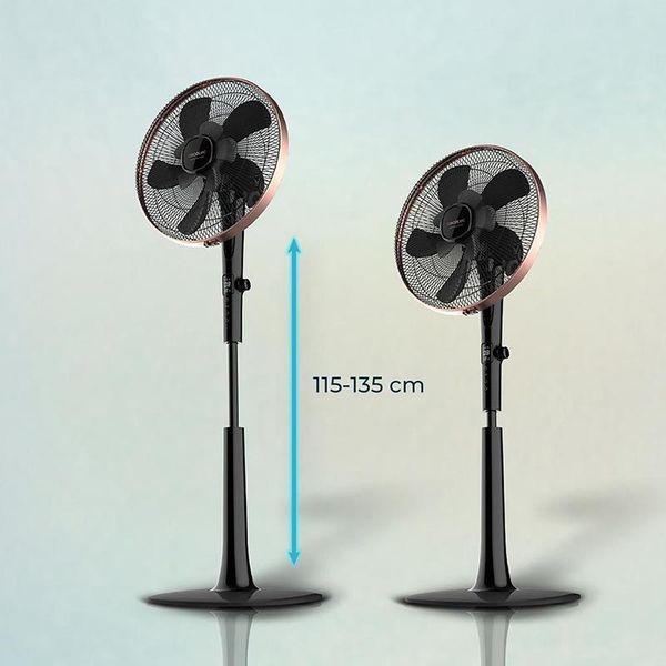 Ανεμιστήρας Ορθοστάτης με DC μοτέρα από τη CECOTEC! Συνδυάζει οικονομική λειτουργία με ισορροπημένη ροή αέρα, διαθέτοντας ισχύ μόλις 28W. Εξοπλισμένος με μοτέρ DC για αθόρυβη λειτουργία, προσφέρει 24 ταχύτητες για επιλογή της έντασης που ταιριάζει σε κάθε χώρο. Επιπλέον, διαθέτει 3 λειτουργίες: Eco για οικονομική κατανάλωση, Sleep για ήρεμο ύπνο και Turbo για έντονη δροσιά. Τα 10 πτερύγια αεροδυναμικού σχεδιασμού εξασφαλίζουν ομαλή ροή αέρα για μέγιστη δροσιά. Χάρη στο τηλεχειριστήριο, ο έλεγχος γίνεται εύκολα από απόσταση, ενώ στην οθόνη LED εμφανίζονται οι επιλεγμένες ρυθμίσεις. Για μεγαλύτερη άνεση, ο ανεμιστήρας διαθέτει ρυθμιζόμενο χρονοδιακόπτη έως 18 ώρες και ρυθμιζόμενο ύψος από 115 έως 135 cm.