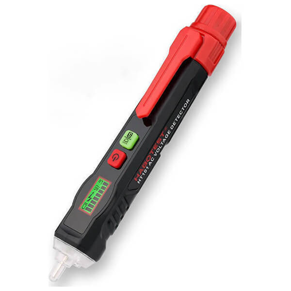 Ανιχνευτής τάσης, χωρίς επαφή, κατάλληλος για ακριβείς μετρήσεις και ασφαλή χρήση. Προσφέρει έλεγχο σημείων διακοπής, καθώς και ανίχνευση ζωντανών και μηδενικών καλωδίων και απενεργοποιείται αυτόματα μετά από 3 λεπτά αδράνειας. -Διαθέτει οθόνη LCD στην οποία προβάλλονται οι πληροφορίες, καθώς επίσης και ενσωματωμένο φακό LED για να χρησιμοποιείτε τη συσκευή ακόμα και σε σκοτεινά δωμάτια -Η συσκευή είναι συμπαγής, φορητή και βολική στη χρήση. Τα κουμπιά εύκολης πρόσβασης σάς επιτρέπουν να ενεργοποιείτε και να απενεργοποιείτε τον ανιχνευτή και να προσαρμόζετε την ευαισθησία. Χαρακτηριστικά Εύρος ανίχνευσης τάσης: υψηλή ευαισθησία: AC 12-1000V, χαμηλή ευαισθησία: AC 48-1000V.Συχνότητα: 50/60 Hz.Λειτουργία συναγερμού: Ήχος και φως.Φωτισμός: Διπλός φωτισμός, κόκκινο και πράσινο.Οθόνη έντασης σήματος: δείκτης 4 επιπέδων.Μέθοδος ένδειξης έντασης σήματος: Ήχος: αργός σε γρήγορος, φωτισμός: πράσινο σε κόκκινο, μπάρα γραφικών: χαμηλό σε υψηλό.Τροφοδοσία: 2x AAA 1.5V μπαταρίες.Διαστάσεις: 157 x 23 x 18.8 mm.Βάρος: 32 g.Αλλα χαρακτηριστικά: Φακός, αυτόματο κλείσιμο, ένδειξη χαμηλής μπαταρίας Εγγύηση: 2 χρόνια.
