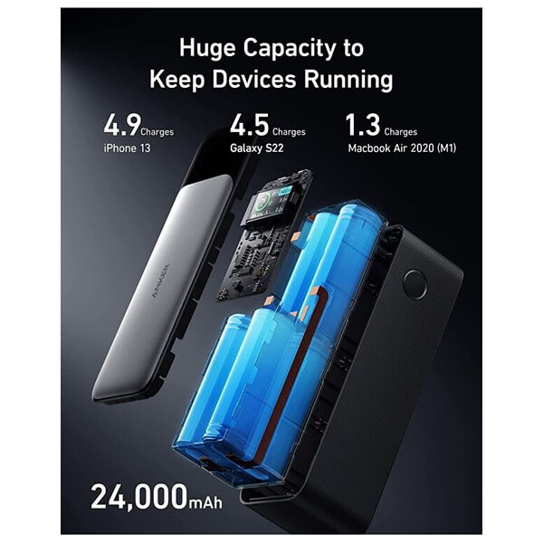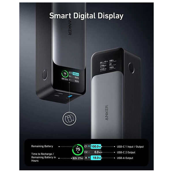 Εξοπλισμένο με την πιο πρόσφατη τεχνολογία Power Delivery 3.1 και ισχυρή φόρτιση διπλής κατεύθυνσης για γρήγορη επαναφόρτιση τόσο του powerbank όσο και των συσκευών. -Διαθέτει χωρητικότητα μπαταρίας 24.000 mAh και 2 φορές μεγαλύτερη διάρκεια ζωής της μπαταρίας. Φορτίζει ένα iPhone 13 σχεδόν 5 φορές ή ένα iPad Pro 2021 12,9'' 1,3 φορές. -Η ευανάγνωστη ψηφιακή οθόνη δείχνει την ισχύ εξόδου και εισόδου και τον εκτιμώμενο χρόνο για την πλήρη επαναφόρτιση του φορητού φορτιστή. -Σας δίνει τη δυνατότητα να φορτίσετε μέχρι και τρεις συσκευές ταυτόχρονα μέσω της θύρας USB-A και των δύο θυρών USB-C. Χαρακτηριστικά Θύρες: 1 x USB-A, 2 x USB-C.Χωρητικότητά: 24.000 mAh.Τεχνολογία φόρτισης: Power Delivery 3.1.Ισχύς φόρτισης: 140W.Διαστάσεις: 15.5 x 5.4 x 4.9 cm.Χρώμα: Μαύρο.Εγγύηση: 2 χρόνια. DOA 7 ημερών