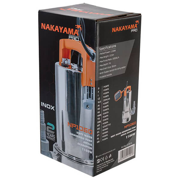 Υποβρύχια αντλία ακάθαρτων 1100W NAKAYAMA PRO NP1060 Inox.