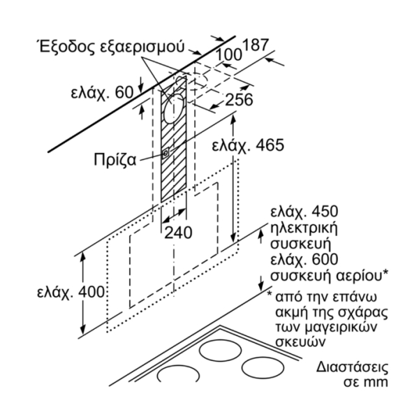 Διάμετρος σωλήνα εξαγωγής αέρα: 120/150 mm.