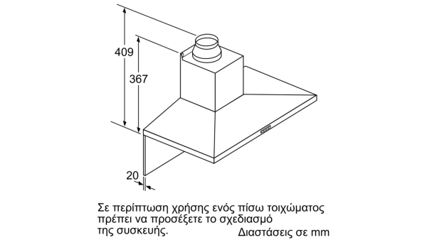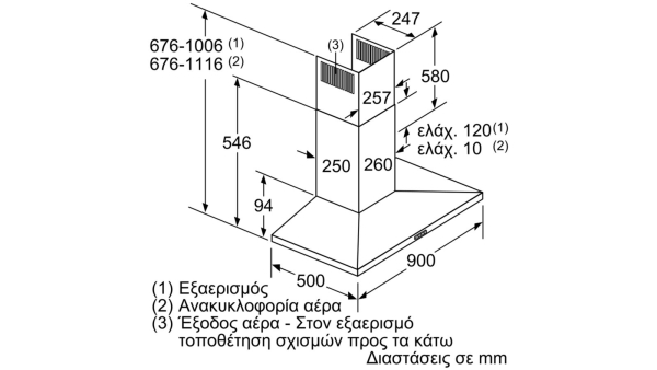 Διαστάσεις σε λειτουργία ανακύκλωσης (ΥxΠxΒ): 676-1116 x 900 x 500 mm.