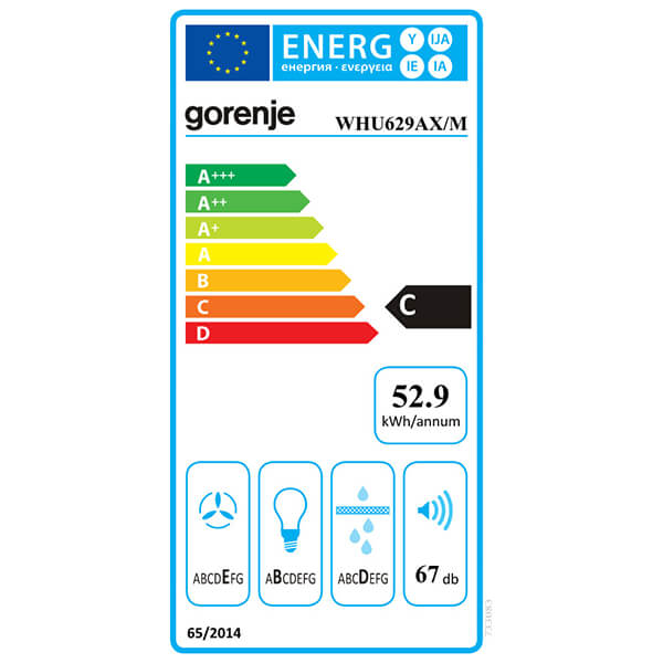 Ελεύθερος απορροφητήρας GORENJE WHU629AX. -Μπορεί να τοποθετηθεί είτε κάτω από ντουλάπια, είτε μόνος του. -Η μέγιστη απορροφητική ισχύς είναι 381 m³/h, η οποία μπορεί να καλύψει ικανοποιητικά χώρους έως και 13 τετραγωνικά μέτρα (με ύψος 2,85 μέτρα). -Ο αέρας που τραβάει ο απορροφητήρας είτε εξάγεται μέσω σωλήνα είτε ανακυκλώνεται στον απορροφητήρα. Για τη λειτουργία με εξαγωγή αέρα χρειάζεται να εγκατασταθεί σωλήνας που θα βγάζει τον αέρα έξω από την κουζίνα. -Δέχεται μεταλλικά φίλτρα, τα οποία αφαιρούνται και πλένονται στο πλυντήριο πιάτων ή στο χέρι. Επιπλέον δεν χρειάζονται συχνή αντικατάσταση. Χαρακτηριστικά Απορροφητική Ισχύς: (Max)381 m³/h.Ενεργειακή κλάση: C.Κατανάλωση Ενέργειας: 52.9 kWh/έτος.Ισχύς: 90 W.Επίπεδο θορύβου: 67dB(A).Ρευστοδυναμική Απόδοση: E.Απόδοση Φωτισμού: B.Φωτισμός: LED.Τάση: 220-240V.Διαστάσεις: 12.5 ? 59.6 ? 46.8 cm.Χρώμα: stainless steel.Εγγύηση: 2 χρόνια.