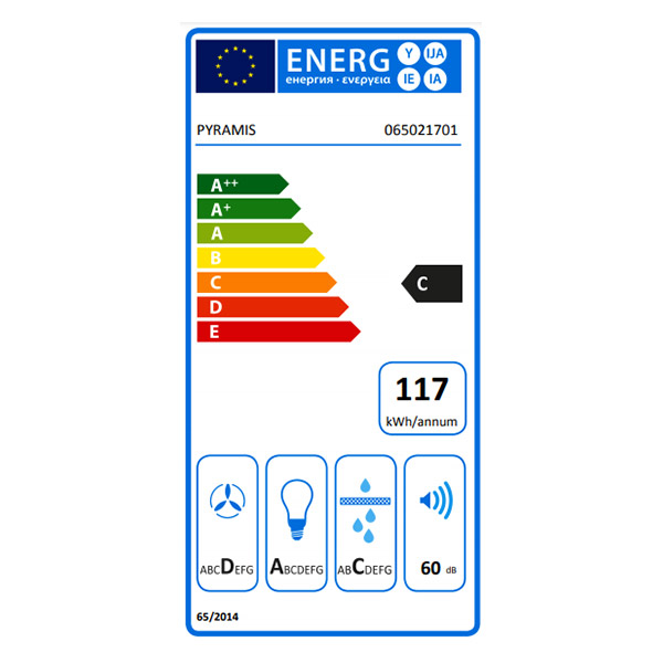 Δελτίο προιόντος Απορροφητήρας οροφής PYRAMIS CORSO. Διακόπτες: Αφής.Επίπεδο θορύβου: 43-69dB.Διάσταση: 90cm.Λάμπες: Σποτ LED.Μοτέρ: 270W.Απορροφητικότητα: 1000m3/h.Ενεργειακή κλάση: C.Ετήσια κατανάλωση: 117 kWh/annum.Ρευστοδυναμική απόδοση: D.Απόδοση φωτισμού: A.Απόδοση κατακράτησης λίπους: C.Χρώμα: Inox.Εγγύηση: 2 χρόνια.