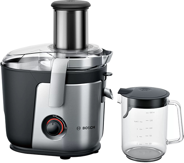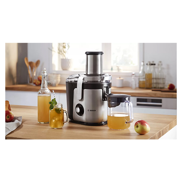 Αποχυμωτής της Bosch με μεγάλο δοχείο συγκέντρωσης χυμού 1.5 λίτρων και δοχείο πολτού 3 λίτρων, για να μπορείτε να φτιάχνετε μεγάλες ποσότητες δροσιστικών χυμών, πριν αδειάσετε το περιεχόμενο. -Χάρη στα πλαστικά χωρίς BPA, η προετοιμασία των τροφίμων είναι εγγυημένη υγιεινή, ασφαλής και άνετη. -Τα εξαρτήματα πλένονται στο πλυντήριο πιάτων. -Διαθέτει διαφορετικές ρυθμίσεις ταχύτητας και ιδιαίτερα ισχυρό κινητήρα, για να έχετε πάντα τέλεια αποτελέσματα, ανεξάρτητα από το πόσο σκληρά η μαλακά είναι τα προϊόντα που επεξεργάζεστε. -Το στόμιο με λειτουργία DripStop είναι σχεδιασμένο έτσι ώστε να μπορείτε να αδειάζετε εύκολα τον χυμό χωρίς απώλειες. Χαρακτηριστικά Ισχύς: 1200 W.Χωρητικότητα Δοχείου Χυμού: 1500 ml.Χωρητικότητα Δοχείου Πολτού: 3000 ml.Ταχύτητες: 3.Υλικό Αλουμίνιο.Μήκος καλωδίου: 1.5 m.Διαστάσεις: 425 x 322 x 221 mm.Βάρος: 5.9 kg.Χρώμα: Ασημί-Μαύρο.Εγγύηση: 2 χρόνια.