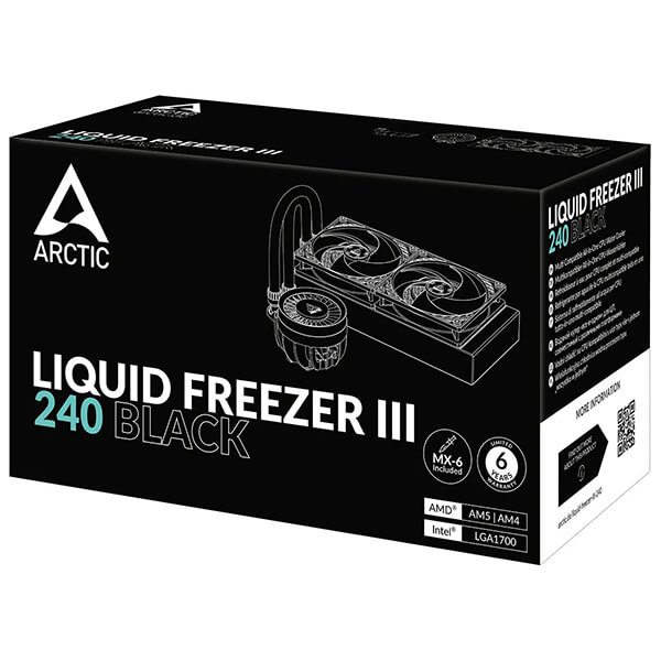 Υδρόψυξη επεξεργαστή διπλού ανεμιστήρα 120mm για Socket AM4/AM5/1700/1851. -Το Liquid Freezer III είναι συμβατό με socket Intel και AMD. Όλα τα Liquid Freezer III μπορούν να χρησιμοποιηθούν με τη νέα υποδοχή LGA1851 της Intel χωρίς περιορισμό. -Το πλαίσιο στήριξης από την ARCTIC δεν παραμορφώνει την CPU, μειώνει μαζικά το μηχανικό φορτίο της CPU, είναι γρήγορο και εύκολο στην εγκατάσταση και επιτρέπει στο ψυγείο να βιδωθεί στην πίσω πλάκα της CPU. Ως αποτέλεσμα, η μηχανική καταπόνηση στην κύρια πλακέτα και τη CPU ελαχιστοποιείται, η απόδοση ψύξης παραμένει σταθερή και η εγκατάσταση είναι γρήγορη και απλή. -Το Liquid Freezer III είναι εξοπλισμένο με μια ειδικά ανεπτυγμένη αντλία νερού ελεγχόμενη από PWM, η οποία έχει βελτιστοποιηθεί περαιτέρω από άποψη απόδοσης και θορύβου. -Ξεχωριστή ρύθμιση: Χρησιμοποιώντας το καλώδιο splitter με τρεις ξεχωριστές συνδέσεις, η αντλία, ο ανεμιστήρας VRM και ο ανεμιστήρας ψυγείου μπορούν να ελέγχονται ανεξάρτητα ο ένας από τον άλλο. Αυτό επιτρέπει, για παράδειγμα, η ταχύτητα του ανεμιστήρα VRM να ελέγχεται ανεξάρτητα από την CPU και να ρυθμίζεται ανάλογα με τη θερμοκρασία των μετατροπέων τάσης μέσω PWM.< -Με τη θερμική πάστα MX-6 που περιλαμβάνεται, έχετε όλα όσα χρειάζεστε για γρήγορη και εύκολη εγκατάσταση. Χαρακτηριστικά Socket: AM4/AM5/1700.Διαστάσεις radiator: 277 x 120 x 38 mm.Υλικό radiator: Αλουμίνιο.Αριθμός ανεμιστήρων: 2 x 120mm.Στροφές ανεμιστήρων: 200-1800 rpm.Ροή αέρα: 56.30 cfm | 95.65 m3/h.Στατική πίεση: 2.20 mmH2O.Σύνδεση ανεμιστήρα: 4-Pin PWM.Ταχύτητα αντλίας: 800-2800 rpm.Cold Plate: Χαλκός.Μήκος σωλήνα: 450 mm.Βάρος: 1490 g.Χρώμα: Μαύρο.Εγγύηση: 6 χρόνια. DOA 7 ημερών