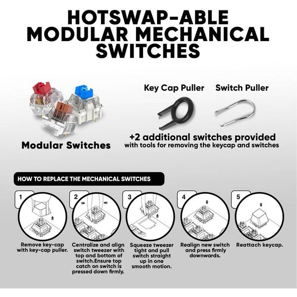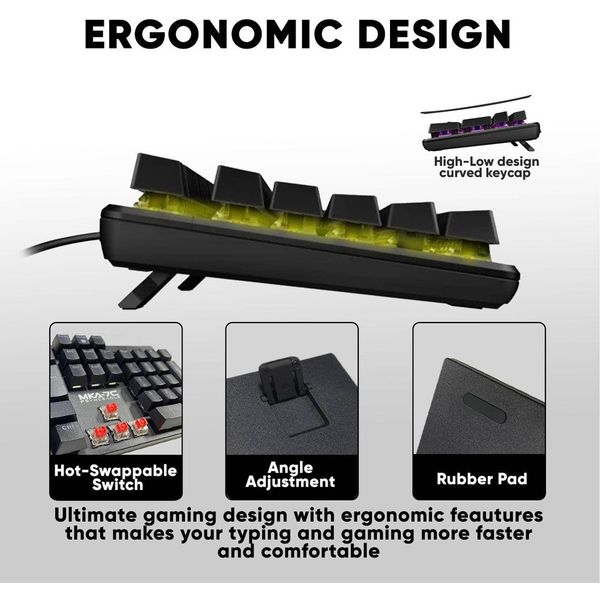 ARMAGGEDDON MECHANICAL HOT-SWAP KEYBOARD 12FX BACKLIGHT RED SWITCH MKA-7C 2024 BLACK LINEAR
