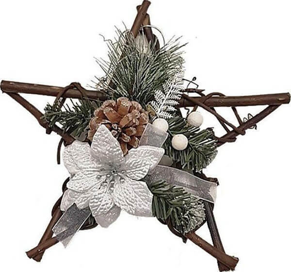 Χριστουγεννιάτικο στεφάνι σε σχήμα αστέρι. Ιδανική επιλογή για γιορτινή διακόσμηση σε τοίχους, πόρτες αλλά και σε όλους τους χώρους, δημιουργώντας την ομορφότερη Χριστουγεννιάτικη ατμόσφαιρα. • Υλικό: Ξύλο. • Διάμετρος: 30 cm. • Εγγύηση: 2 χρόνια.