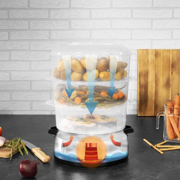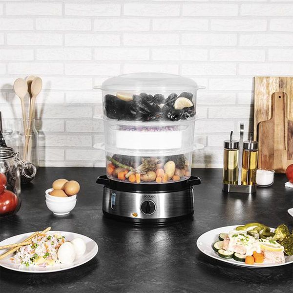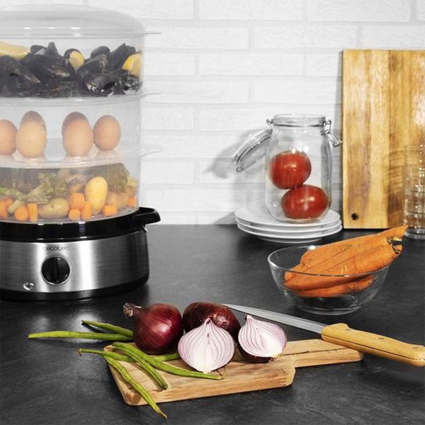 Ο ατμομάγειρας CEC-04109 από την εταιρία Cecotec, είναι ιδανικός για υγιεινό μαγείρεμα με αυτμό, διατηρώντας όλα τα θρεπτικά συστατικά και τις βιταμίνες των τροφίμων. Περιλαμβάνει 3 δοχεία συνολικής χωρητικότητας 9Lt, μπολ 1Lt για την παρασκευή ρυζιού καθώς και στηρίγματα για το μαγείρεμα των αυγών. -Ανοξείδωτο σώμα. -Δοχεία χωρίς BPA φιλικά προς το περιβάλλον. -Πλένεται σε πλυντήριο πιάτων. -Διαθέτει 2 πλευρικές εισόδους νερού. -Τα δοχεία μπορούν να αποθηκευτούν μεταξύ τους. -Αυτόματη απενεργοποίηση στο τέλος του μαγειρέματος ή στο τέλος του νερού. -Λειτουργία συντήρησης της θερμότητας. -Προστασία από υπερθέρμανση. -Περιλαμβάνει δίσκο συλλογής υγρών. Ισχύς: 800 W.Επίπεδα Μαγειρέματος: 3.Χωρητικότητα: 9 λίτρα συνολικά.Χρονοδιακόπτης: 60 λεπτών με ένδειξη φωτός και ήχο.Εγγύηση: 2 χρόνια.