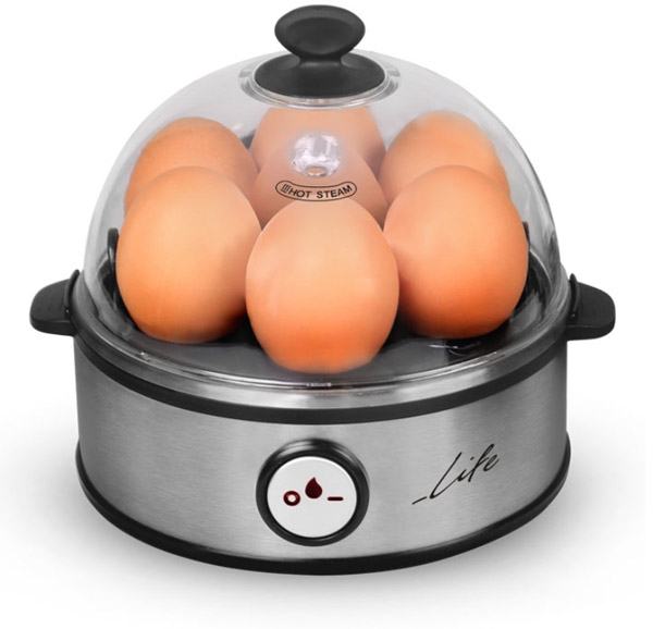 Ο νέος LIFE βραστήρας αυγών σας λύνει τα χέρια! Ξεχάστε τα καμένα αυγά, ξεχάστε την αναμονή πάνω από το μπρίκι μέχρι να βράσουν τα αυγά. Με τον ειδικό δοσομετρητή που θα βρείτε στην συσκευασία, γεμίζετε τον αυγοβραστήρα με την αντίστοιχη ποσότητα νερού (αναλόγως της ποσότητας των αυγών που βάζετε, αλλά και του πώς τα προτιμάτε - σφιχτά, μέτρια ή μελάτα). Με την ειδική καρφίτσα που υπάρχει επάνω στον δοσομετρητή, κάνετε μια μικρή τρύπα σε κάθε αυγό και τα τοποθετείτε στην ειδική θήκη (max. 7 αυγά). Όλα τα υπόλοιπα τα αναλαμβάνει το 7Eggs! Χάρη στην ηχητική ειδοποίηση που διαθέτει, μόλις τελειώσει το νερό που έχετε βάλει, θα σας ειδοποιήσει ενώ ταυτόχρονα θα σταματήσει την λειτουργία του! Οι δυνατότητες του LIFE 7Eggs όμως δεν σταματούν εδώ! Διαθέτει επιπλέον ένα μεγάλο μπολ για παρασκευή ομελέτας στον ατμό, αλλά και ένα μεγάλο μπολ 2 θέσεων, για υγιεινά αυγά ποσέ ή λαχανικά στον ατμό!O νέος αυγοβραστήρας LIFE 7Eggs θα γίνει το must-have "εργαλείο" στην κουζίνα σας, για να προσφέρετε ένα υγιεινό γεύμα στον εαυτό σας και στην οικογένεια σας. Χαρακτηριστικά: - Διαθέτει επιπλέον 2 αξεσουάρ: ένα για παρασκευή ομελέτας και ένα για αυγά ποσέ ή λαχανικά στον ατμό. - Ηχητική ειδοποίηση. - Αυτόματη απενεργοποίηση. Μέγιστος αριθμός αυγών: 7.Ισχύς: 360W.Υλικό: Ανοξείδωτο ατσάλι, πλαστικό.Τροφοδοσία: 220-240V.Διαστάσεις: 182 x 156 x 162 mm.Περιεχόμενα συσκευασίας: Βραστήρας αυγών, Καπάκι με οπή διαφυγής ατμού, Δοσομετρητής νερού με καρφίτσα, Δίσκος τοποθέτησης αυγών, Μπολ για ομελέτα, Μπολ αυγών (2 θέσεων) για αυγά ποσέ ή λαχανικά στον ατμό.Χρώμα: Ασημί.Εγγύηση: 2 χρόνια.