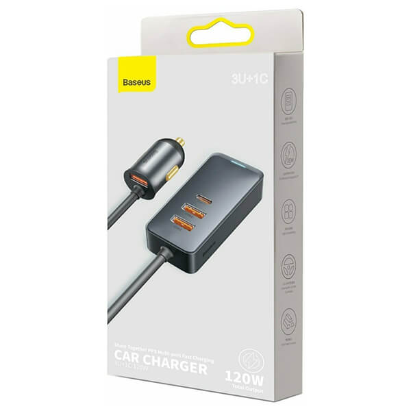 > > > BASEUS CAR CHARGER SHARE TOGETHER + EXTENSION CORD 3X USB + TYPE-C 120W GREY