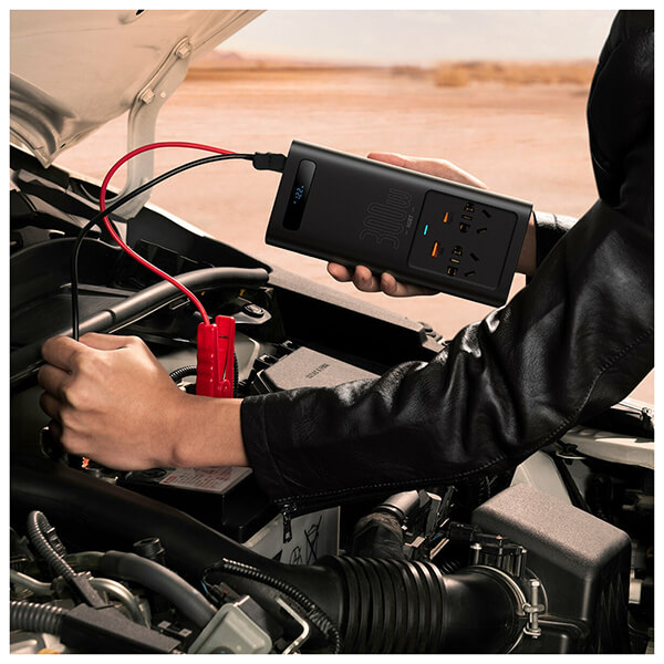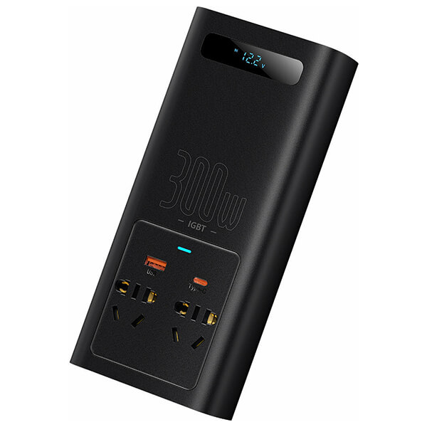 BASEUS CAR INVERTER 12V TO 220V 300WATT BLACK (TLS.320038)