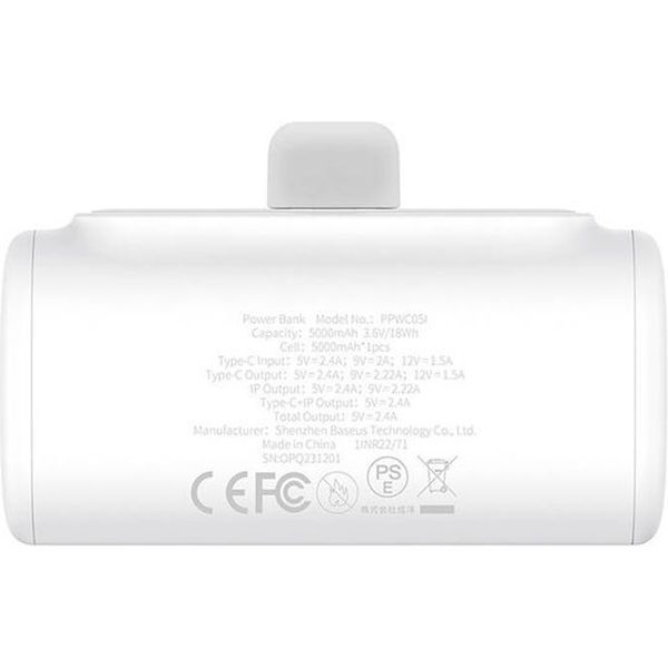 BASEUS COMPACT POWERBANK 5000MAH 20W TYPE-C + LIGHTNING WHITE (TEL.219368)