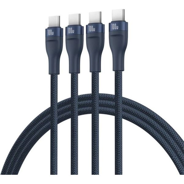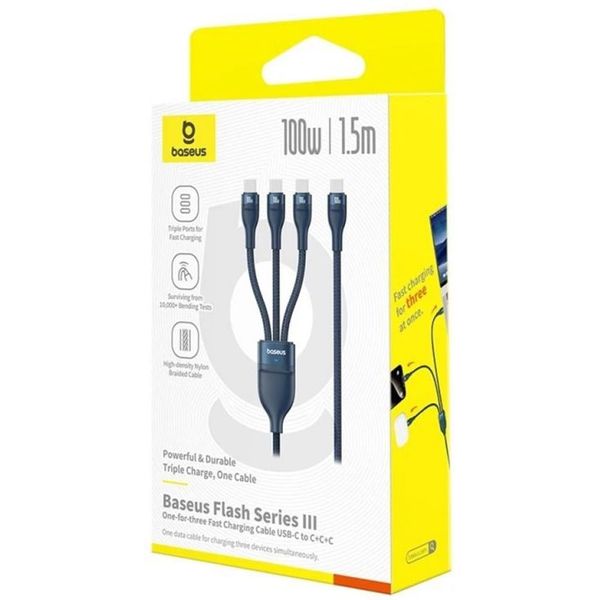 baseus flash series iii 3in1 100w 5a type c to 3 x type c cable 15m blue photo