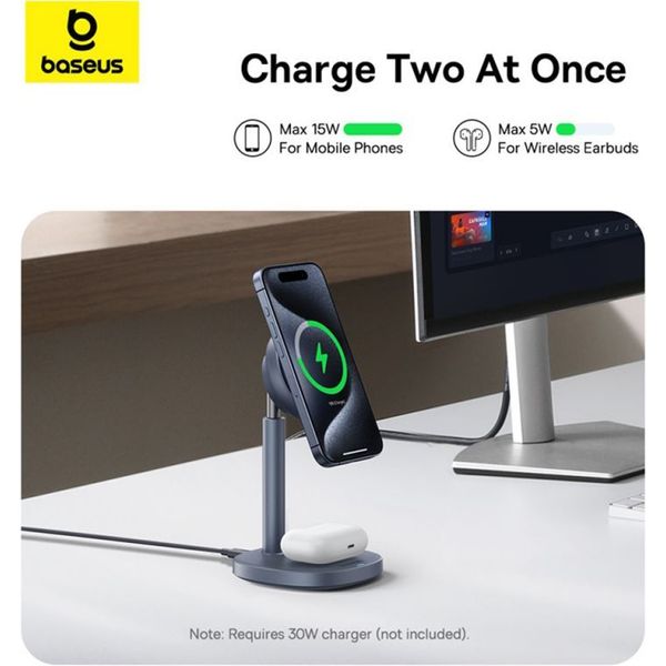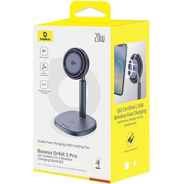 baseus wireless charger orbit 2 pro 2in1 20w 167a grey photo