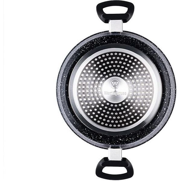 Αντικολλητική χύτρα με γυάλινο καπάκι (4.3 Lt) Black Marble Series από την Westinghouse! Χάρη στην διπλή επίστρωση back marble και στον επαγωγικό πάτο, είναι ιδανική για την εκτέλεση μεγάλου εύρους συνταγών κατσαρόλας όπως σούπες και βραστά σε κάθε εστία. Παράλληλα, χάρη στις αντικολλητικές ιδιότητές της μπορεί να καθαριστεί εύκολα και γρήγορα στο χέρι ή στο πλυντήριο πιάτων. Τέλος, το κομψό, high-end design της χύτρας.