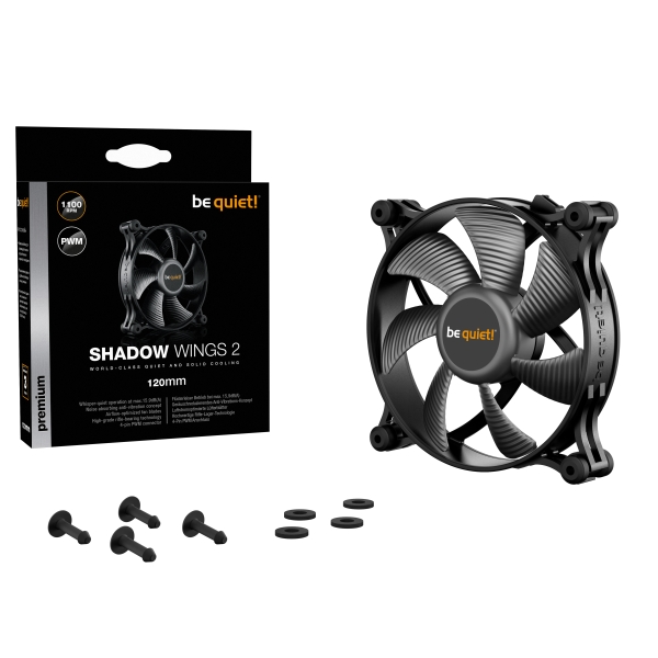 Οι ανεμιστήρες Be quiet! Shadow Wings 2 PWM προσφέρουν αθόρυβη λειτουργία και αξιόπιστη ψύξη σε χαμηλές στροφές ανά λεπτό. Ταχύτητα ανεμιστήρα @ 100% PWM / 12V: 1100 rpm.Ροή αέρα @ 100% PWM / 12V: 38.5 CFM / 65 m3/h.Πίεση αέρα @ 100% PWM / 12V: 0.82 mm H2O.Επίπεδο θορύβου @ 100% PWM / 12V: 15.9 dBA.Τεχνολογία κινητήρα: 4-pole fan motor.Σύνδεση: 4-Pin PWM.Μήκος καλωδίου: 500 mm.Διάρκεια ζωής: 80000 h / 25°C.Τάση: 12 V.Ισχύς εισόδου: 1.44 W.Χρώμα: Μαύρο.Διαστάσεις: 120x120x25 mm.Βάρος: 0.13 kg.Εγγύηση: 3 χρόνια. DOA 7 ημερών