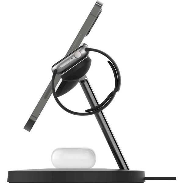Ο φορτιστής Belkin BOOST^CHARGE™ PRO 3-in-1 Wireless Charger με MagSafe προσφέρει τον πιο εύκολο και γρήγορο τρόπο να φορτίζεις όλες τις συσκευές σου ταυτόχρονα. Με ισχύ έως 15W, φορτίζει ασύρματα το iPhone 12, 13 και 14, αξιοποιώντας πλήρως την τεχνολογία MagSafe για ασφαλή και άμεση μαγνητική ευθυγράμμιση. Παράλληλα διαθέτει ενσωματωμένη βάση φόρτισης για Apple Watch και ειδικό pad για AirPods, καλύπτοντας έτσι όλο το οικοσύστημα Apple σε μία συσκευή. Ο premium σχεδιασμός με ανοξείδωτες λεπτομέρειες ταιριάζει σε κάθε χώρο, ενώ η δυνατότητα τοποθέτησης σε portrait ή landscape mode κάνει τη χρήση ακόμα πιο ευχάριστη. Οι ενδείξεις LED διασφαλίζουν σωστή και ασφαλή φόρτιση. Μια ολοκληρωμένη λύση με ποιότητα Belkin που συνδυάζει στυλ και πρακτικότητα. - Συμβατότητα: iPhone 12/13/14 (MagSafe), Apple Watch, AirPods.