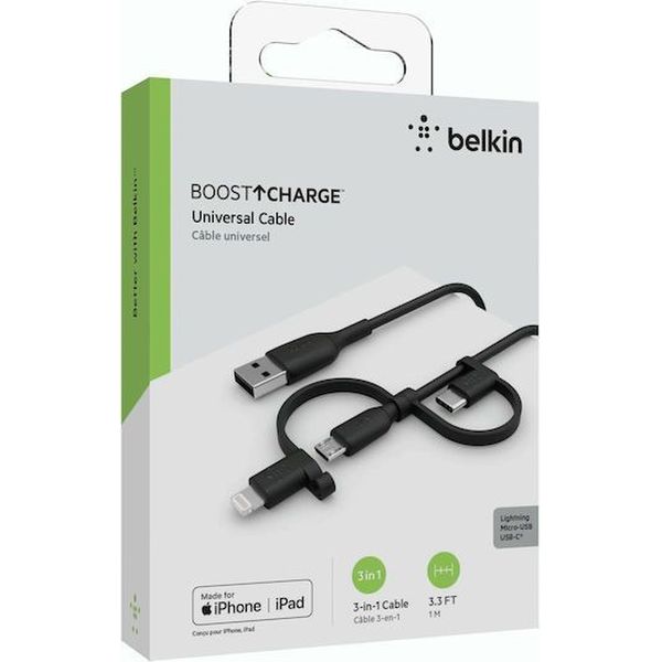 BELKIN BOOST CHARGE UNIV. CABLE 1,2M LIGHTN./MICRO/USB-C - USB-A TEL.235177 BELKIN BELKIN ΚΑΛΩΔΙΟ