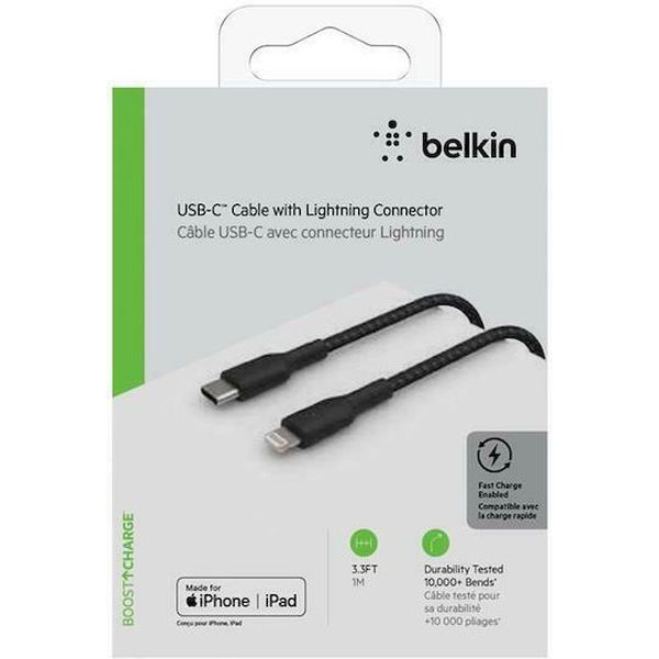 > > > BELKIN CAA004BT1MBK BRAIDED USB-C TO LIGHTNING CABLE 30W 1M BLACK
