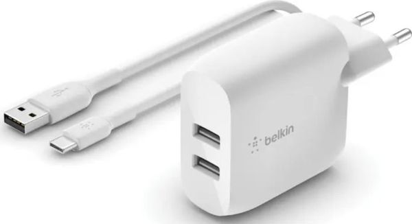 > > > BELKIN WCE001VF1MWH BOOSTCHARGE DUAL USB TYPE-A WALL CHARGER 24W + USB-A TO USB-C CABLE
