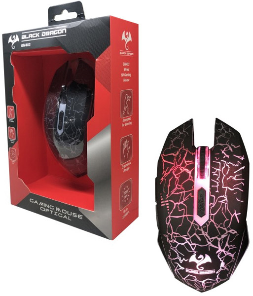 Ενσύρματο ποντίκι BLACK DRAGON GM403. Χαρακτηριστικά: - USB, πλήκτρο DPI τριών θέσεων. - Ανθεκτικό καλώδιο, gaming εμφάνιση. - Πλήκτρα αντοχής 5 εκατομυρίων κλικ. - Εργονομικός σχεδιασμός, αντιολισθητική λαβή. - Ομαλή κίνηση δείκτη με ακριβή αντιστοιχία θέσης. - Ευαίσθητος οπτικός αισθητήρας με ανάλυση: 1000 / 1600 /3200 DPI. - Τάση: 3V / Ρεύμα: 11mA. Χρώμα: Μαύρο.Εγγύηση: 2 χρόνια. DOA 7 ημερών