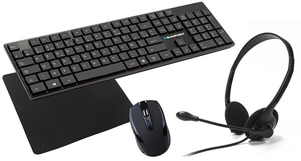 Σετ με ασύρματο πληκτρολόγιο, ασύρματο ποντίκι Blaupunkt και ενσύρματα ακουστικά.