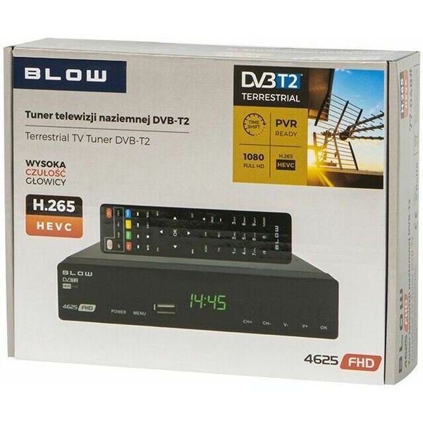 Το Blow DVB-T2 4625FHD είναι ένας αξιόπιστος και εύχρηστος ψηφιακός δέκτης επίγειας τηλεόρασης, σχεδιασμένος για υψηλής ποιότητας λήψη καναλιών DVB-T και DVB-T2. Χάρη στη σταθερή και καθαρή ψηφιακή μετάδοση, προσφέρει εξαιρετική εικόνα Full HD και μειωμένες παρεμβολές, εξασφαλίζοντας άνετη και απροβλημάτιστη τηλεθέαση. Με λειτουργίες όπως EPG, TimeShift και USB recording, επιτρέπει στον χρήστη να παρακολουθεί, να ελέγχει και να καταγράφει το τηλεοπτικό περιεχόμενο με απόλυτη ευκολία.